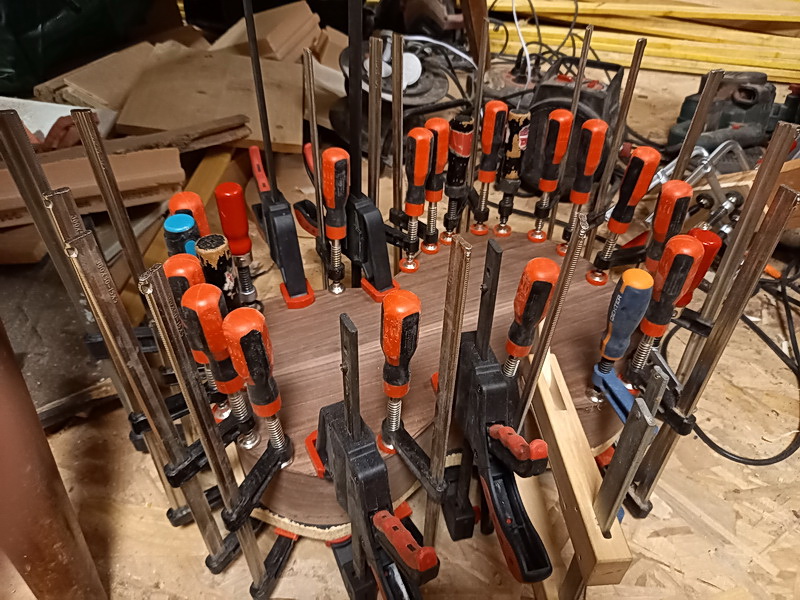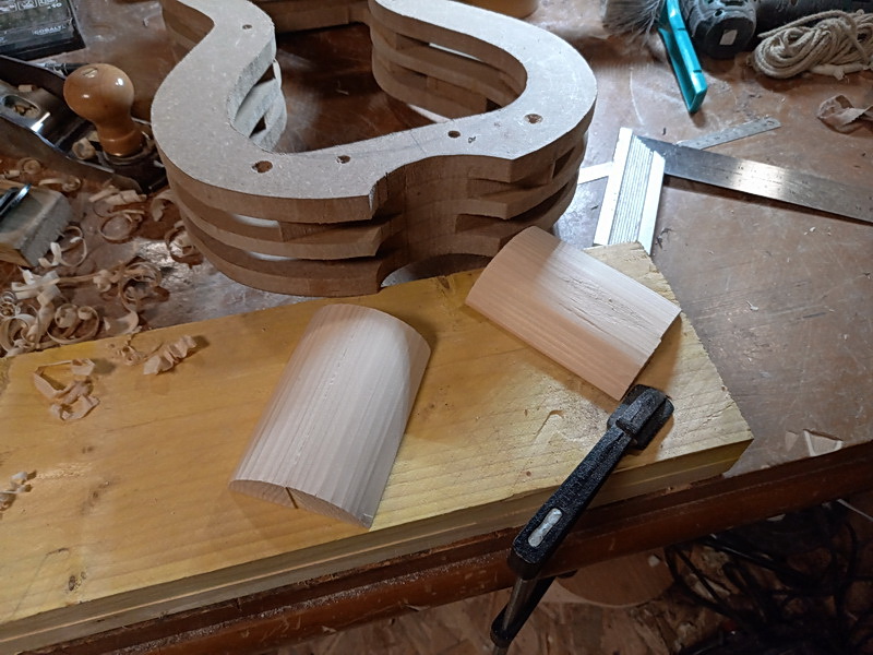 Je courbe les éclisses au fer + de l'eau (pas trop). Là aussi j'ai fait pas mal de progrès, 1/4h par éclisses et c'est propre.