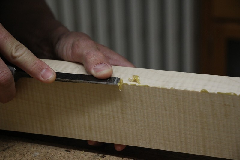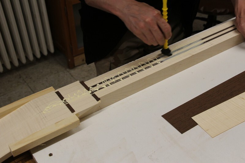 Cela permet de tracer l'axe du manche pour repérer la position du truss :