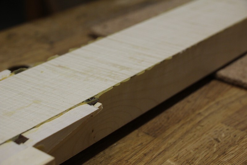 Le but est également (et surtout en réalité) d'amener ces placages affleurants aux côtés du manche :