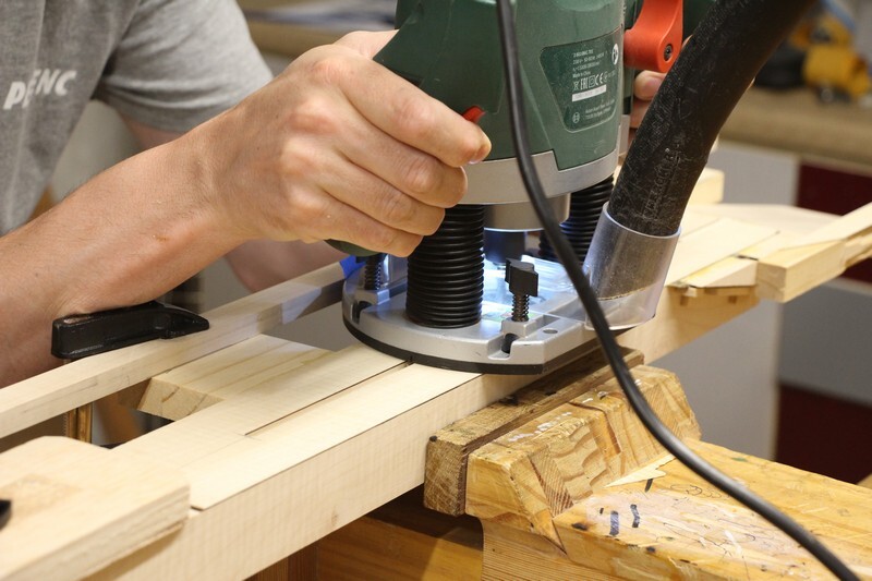Afin d'assurer une bonne stabilité de la défonceuse en arrivant vers la tête, j'ajoute 2 placages qui permettent d'amener la surface de ces extensions au même niveau que la surface qui va recevoir la rainure de truss :