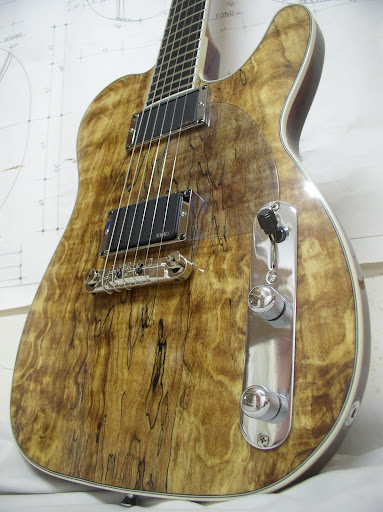 On note la petite plaque en plastique de gsb collée au double face 3m (je suis pas mécontent du bricolage) en effet le vernis ktm est un peu limite niveau dureté pour de l'électrique , et résiste mal au coups de médiators nerveux